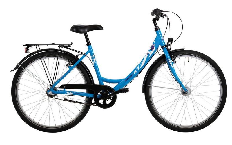 Hochwertiges Fahrrad für junge Radler aus Aluminium mit Gepäckträger und Beleuchtung.
